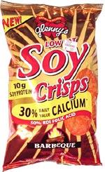 If that doesn’t float your boat, my latest favorite snack are those no-guilt Glenny’s Soy Crisps. The barbeque flavor beats potato chips for me, and I get some protein, fiber, folic acid, and almost no fat. The cheddar cheese flavor tastes the most artificial to me out of all the flavors, but it still satisfies a craving for junk food.