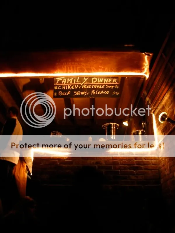 Over the weekend, I celebrated my 25th birthday with a few friends by bar-hopping around my old streets in Park Slope. Little did I know you can now bar-hop on Fourth Avenue. We began at Sheep Station, at 4th Ave. and Douglass, and I was dismayed to discover it had changed overnight into primarily a sit-down restaurant (no doubt thanks to the NYTimes review), and there was no room for us to just drink. So we headed a few blocks up to The Cherry Tree on 4th and Bergen, hung out in their beautiful backyard, which was well-heated thanks to the warm brick pizza oven back there (Adam, you might want to check this out if you haven’t already–my friends were raving about it and they’re generally picky about pizza), and a warm WHOLE PIG that happened to be roasting in the middle of the backyard. We’d stumbled into the place on the first Saturday of the month, which according to head chef Patric, was free roast pig night. He informed us the thing had been killed that morning in New Jersey and had been roasting and smoking for a good part of the day, though he was disappointed he didn’t have as much time to marinate it as he would have liked.