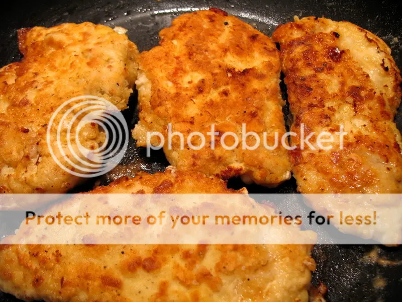 Five brownie points: When craving a fried meal, this not-very-deep fry method always works for me. This way I can control the amount of oil used, while enjoying the crispy crust from the egg and flour dredging.