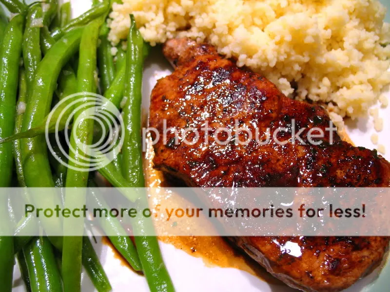 Pork Chop with Balsamic Reduction and Steam-Sauteed String Beans with Couscous