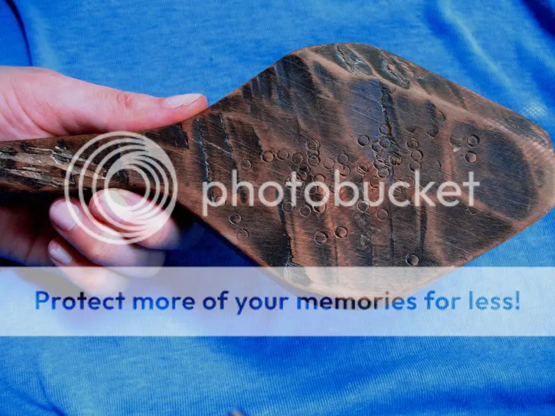 The cookie/cake type dessert with the mysterious triangular shaped hole that this tool would form could not be any deeper than about 3/4 inch. That leaves out moon cakes, the traditional Mid Autumn Festival dessert that are also molded in a decorative cast and have a sweet filling inside a cakey shell. Or does it? Is there some shallower version of the cake made in certain regions of China, perhaps not served solely on the holiday? How is the handle necessary? And what about the cluster of identical little ring-shaped indentations on the back of the mold? A sign it was used industrially in some commercial kitchen with lots of machines? A sign it was used by aliens?
