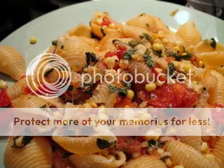Shell Pasta With Corn, Tomato, Carmelized Onion and Basil