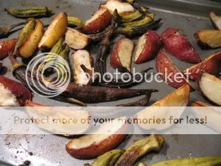 potato wedges and whole okra (you can eat the stems!), simply roasted