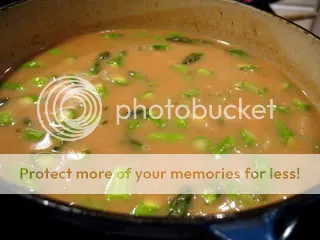 There is nothing too original about lopping off a lot of heads of garlic and turning them into a potent soup. There are several Spanish versions of garlic soup, sometimes with poached eggs as well as French versions like Julia Child’s (via Julie Powell) which consider garlic as more or less a soup broth builder. Taking a slightly sweeter approach, I slow-roasted the garlic heads first, whole, scooped them out once they were softened to gooey caramelized slush, and added them to a pot of carmelizing onions. Pureed with a few slices of toasted bread, these aromatics created the denseness and silky texture that I might have otherwise gotten from cream. For a little chunkiness and subtle flavor I let chopped asparagus steep in this garlicky bath for about twenty minutes before serving it. The stalks were soft, but not mushy; their color had just began to blend into the golden soup, turning it a slight pea-green. It’s not the best color I’ve ever seen, I must note.