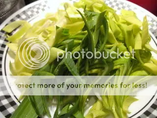 leeks get a thin, diagonal slice, so that even their tougher (but nutritious) green parts are more palatable