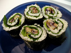 In the spirit of his snatching up the delegates and inspiring crowds that rival those of rock ‘n roll shows, I’ve rolled up some crispy fried eggplant and fresh spinach in this veggie maki-zushi roll.