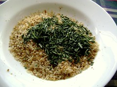 coarsely chopped rosemary and fresh breadcrumbs from a not-so-fresh seeded semolina loaf