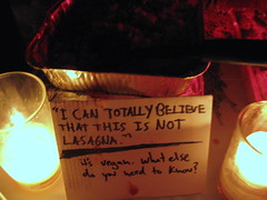 Hi Amandarae! The consensus at the (billiards) table had this as good — and what free food isn’t? But I daresay that the more traditional lasagnas won this round, for me at least. Like Karol’s Fontina (not mozzarella, Fontina!) cheese-smothered homemade tomato sauce-and-ricotta version… mmmm.