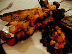 The combo platter: veggie, shrimp and chicken mango sausage kebabs, grilled corn with parsley butter, and I know that you’re thinking that black stuff on the bottom right is black beans, but it is not. It is truly incredible black beans, cooked with savory sausage bits and aromatics, to the silken texture of pudding. It was outstanding.