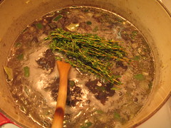 The beans were, and still are, hazardously hot. Matt couldn’t believe I didn’t even taste or inspect the peppers before throwing them into the pot, which I’m pretty ashamed of. So, at present the big, black, gooey, bare thyme sprig-studded disaster is sitting in my fridge. I hope to somehow forge a soup out of it at some point, but I don’t think I can muster the courage to open that pot for a few days. I wouldn’t be surprised if the stuff is disintegrating the enamel on my Le Creuset pot right now.