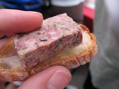 Next up, we tasted terrines, pâtés and — this was a new one for me — pork rillette from Gabriel’s Handmade. This was all very rich for my blood, coming away from the cheese-sperience. But like a true freeloader, I tasted everything on the tray. My favorite was their country pâté with wild ramps.