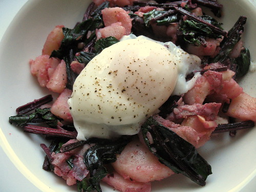 I am ashamed to say I was one of those “beet green cutting” offenders. I knew the greens were edible but had no idea what to do with them. Thank you so much for this recipe. I made it last night and it was fantastic, and gave my taste buds something new. I even managed to poach the eggs in one try, which I was very proud of after just watching Julie Powell’s numerous attempts in Julie & Julia.
