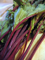 i love beet greens also, but you have to be careful with the color bleeding. i added beet greens to miso soup once, and completely frightened my boyfriend with the bloody soup.