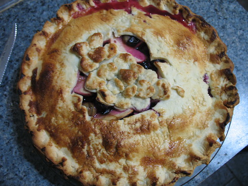 From the outcome of this pie, it looks like I could get better acquainted with them still. While they tasted delicious, and cooked to a beautiful, deep red-purple, I didn’t bother to seed the individual grapes. Therefore, everyone got a little crunch of seed with every bite. Now, I hardly mind this myself, but I sense it’s not the optimum pie-eating experience. If anyone has any suggestions on how best to remove those tiny little seeds beforehand — I’m guessing you just get in there with a paring knife and squish each little bugger pretty well in the process — please fire away.