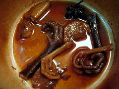 Finally, in case you’re wondering what I did with the feet… this is perhaps only for the brave, but I stewed the little claws with some crushed garlic, ginger, soy sauce, rice wine and a five-star anise clove. To anyone familiar with dim sum-style chicken feet, you might know that the real pleasure in the dish is its sauce. There’s really nothing on the bones but a bit of skin and gristle to chew on, and with these tinier pheasant feet, there was even less. I’m not convinced that with a bird of this size the execution is well-advised, but it did make for fun before-dinner snacks to pass around at our party. In fact, if you ever feel like measuring your friends’ foodie personalities, I’ll advise this dish as a way of identifying the truly gung-ho of the flock.