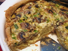 Thanksgiving-morning quiche with mushrooms, cheddar and scallions