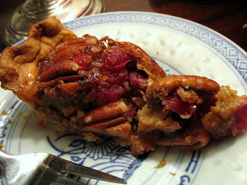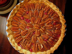 look closer and this “pecan pie” is filled with a melange of cranberries, raisins and orange zest in a dark syrupy custard