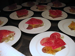 m.thew, as one of the persons in the picture above (pink sweater, thats me :)), i can tell you that it is nothing like indentured servitude. part of the whole concept of supper clubs is that it is a hands on educational experience. my knife skills improved drastically from that afternoon under the watchful eyes of michael and daniel (and cathy!), and michael sharpened my knifes. plus i got to eat a great meal, for less than the cost of a knife skills class. though, i do kind of agree with melissa that i feel a little priced out, but hopefully cathy is right about that.
