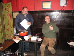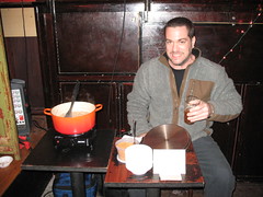 It was a frigid Saturday in New York when seven chefs gathered in the back room at Jimmy’s No. 43 to unveil their steaming pots of the French countryside comfort food, cassoulet. A fluid stream of Greenmarket supporters sampled each one throughout the afternoon until pretty much every bean was scooped up. Asked to vote for their favorite takes, each taster turned their attentions to printed sheets describing the cassoulets, their creators and affiliations. Among them were local and seasonal culinary expert Kelly Geary of Sweet Deliverance, former Greenmarket Manager and chef-to-be Melissa Rebholz, Jimmy No 43’s own chef John Crabbs, Italian chef and traveling pizza teacher Mark Bello, Rockaway Beach surf taco shop extraordinaire Andrew Field, and former Pegu Club and wd-50 (whoa!) chef Phillip Kirschen Clark. Then some blogger and cook-off fanatic of Not Eating Out in New York.