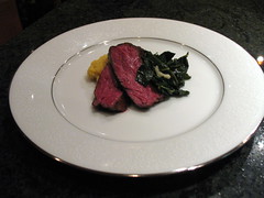 The other Indonesia/Chicago pizza of the night was a chicken satay version; this was really an afterthought of mine, winged from ingredients around the kitchen. Since we’d made a Thai curry soup with curry ravioli “explosions” (fashioned after a dish served at Alinea that this group of chefs has become very familiar with lately, called “Black Truffle Explosion” — more on that tomorrow), there were a lot of leftover Thai ingredients. Coconut milk, limes, cilantro and spices. Although a more Indonesian-tasting version of satay would have been more Obama-appropriate, I went with a Thai-style chicken satay for this deep-dish pizza. Here’s a glimpse at some of the other offerings of the night: