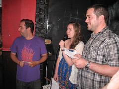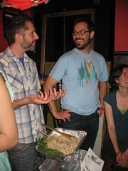 The judges spent a good hour or so deliberating together over how to place their winners. Turned out they were pretty split! The panel of local food authorities put together to judge the contest consisted of chef Mark Bello, who schooled me and everyone else at the Cassoulet Cook-Off, and who “schools” people for a living at his hands-on pizza workshops throughout the city; the erudite food blogger Zach Brooks, from Midtown Lunch, who I enjoy the company of so well even though our blogs are complete antitheses of one another that something’s either so wrong or so right in this world; and Erin Zimmer, a regular contributer and editor at Serious Eats — need I say any more to hail to the queen, baby? (Plus, Erin was in the process of moving this weekend but still made it down to chow!)