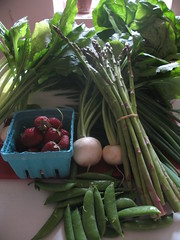 It’s my first summer being a member of a CSA, and last week marked our first produce pick-up. Since I have so many friends in the same situation — with different CSAs in their respective neighborhoods — it’s been fun discovering the game of “CSA brag and compare”: What was in your share this week? Oh, mine had only sugarsnap peas, asparagus, bok choy, radishes, red and green lettuces, scallions and strawberries. You got strawberries!!? Yes. Life is unfair. The local farm that serves Crown Heights CSA is Sang Lee, which some of us went to visit a few weeks ago. An organic vegetable farm, I didn’t think they dabbled heavily in fruits. Not only do they, but they grow some of the finest strawberries I’ve ever seen.