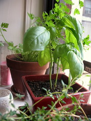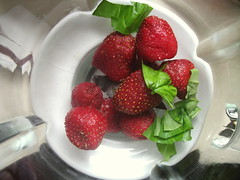 Finally, my windowsill herbs have been doing nicely lately. Strawberry and basil just seemed a nice match. I forgot entirely about the cereal breakfast and had a few of these instead.