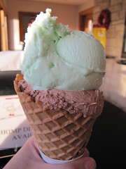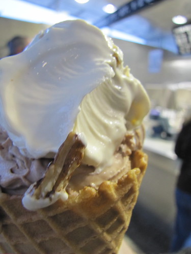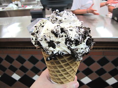 the final cone, for now: Kopp’s cookies ‘n cream and midnight chocolate (on bottom)