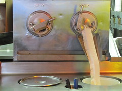 freshly frozen custard goes into a vat