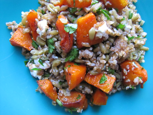 Bulgur and Freekeh Pilaf with Roasted Butternut Squash, Feta and Parsley