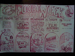 a flyer for SVA Green Action Network’s food week (by cartooning major Hilary)