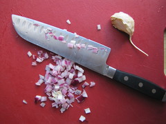 finely chopped red onion and garlic