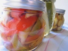 pickled mixed peppers, and other jarred summer vegetables