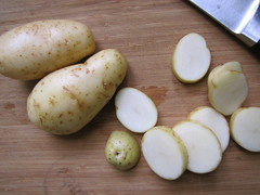 about 1 lb white or fingerling potatoes, sliced to 1/2-inch pieces
